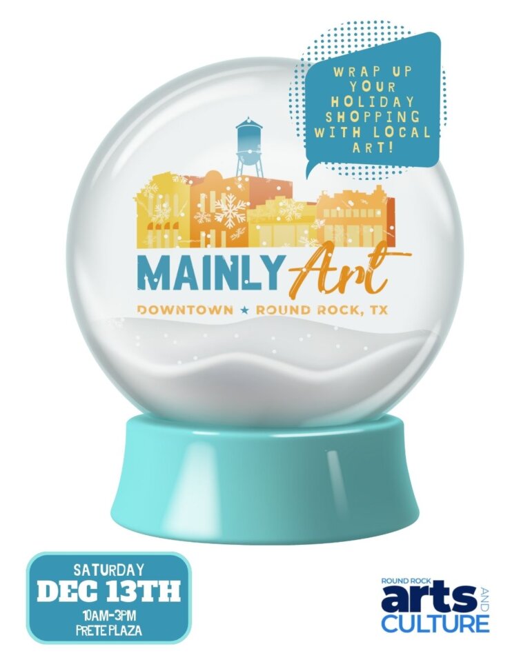 Participate as an artist at our Mainly Art event this Fall 2025 in Downtown Round Rock. Click here for guidelines/application. This is a free opportunity for artists to present and sell their work. Â