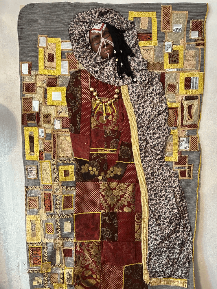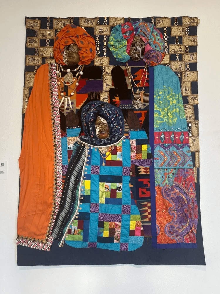 Blending fabric and narrative, Suzette creates layered compositions that are both deeply personal and universally resonant. Her pieces often depict faceless figures, symbolic of collective memory, ancestral presence, and the stories passed down through generations.
