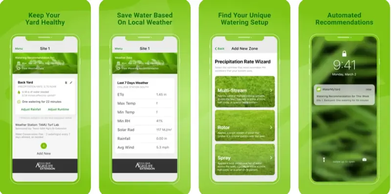To get started, visit WaterMyYard.org or download the app. You will need to answer questions about your irrigation system and landscape.Â