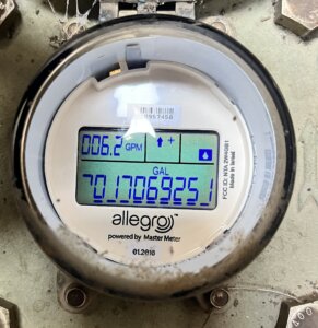 – the little water drop in the upper right corner of the meter face. This means that water has been flowing through the meter for 24-hours or longer, without stopping.