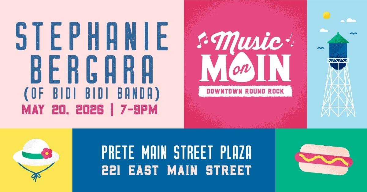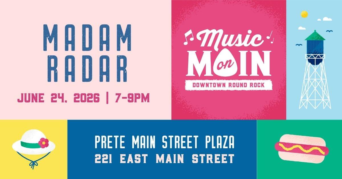 How to attend: Music on Main concerts are free (no ticket required) and family friendly. We encourage you to bring your own lawn chairs or picnic blankets to enjoy the show. Bring your own picnic, or grab takeout from a local business, of which there are numerous nearby the show. Parking is free throughout Downtown Round Rock, including City Hall Parking Garage. For more events, programs, and resources from the City of Round Rock Arts and Culture, click here.