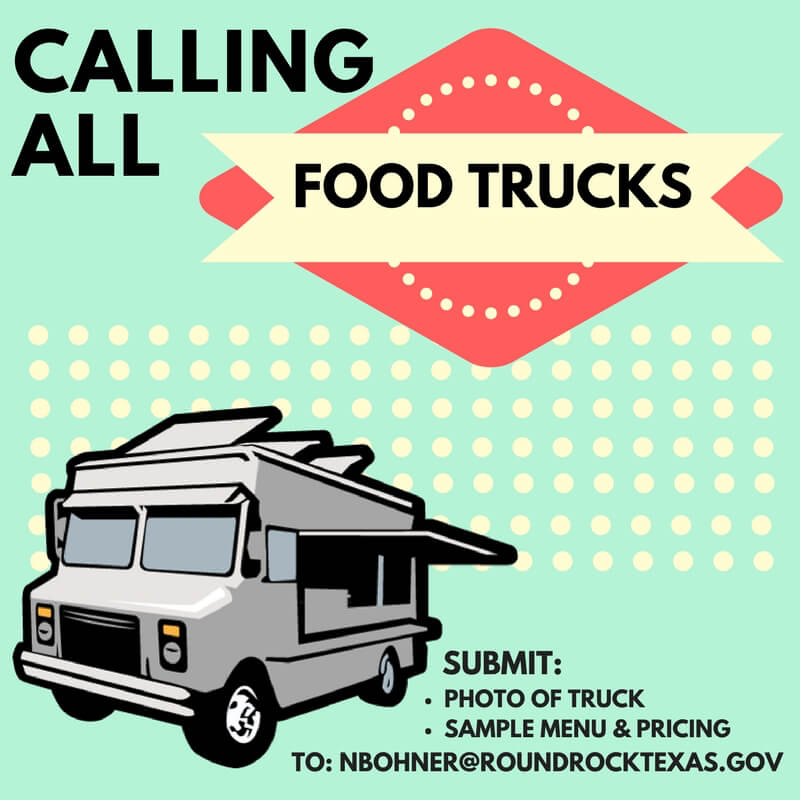 Interested parties should submit a photo of their truck, a sample menu with pricing and any other information pertinent to their application via email to nbohner@roundrocktexas.gov with “FOOD TRUCK SUBMITTAL” as the subject.