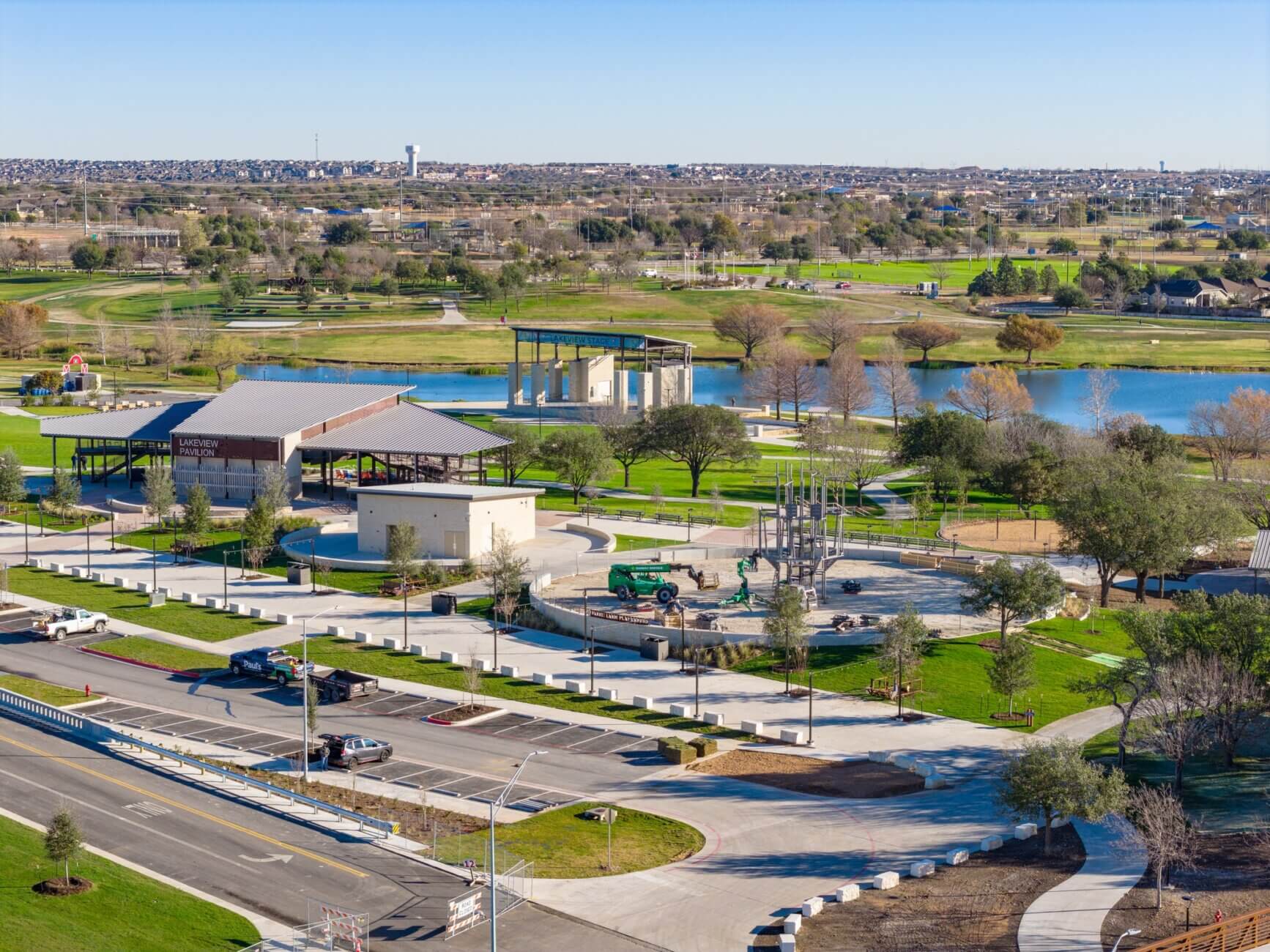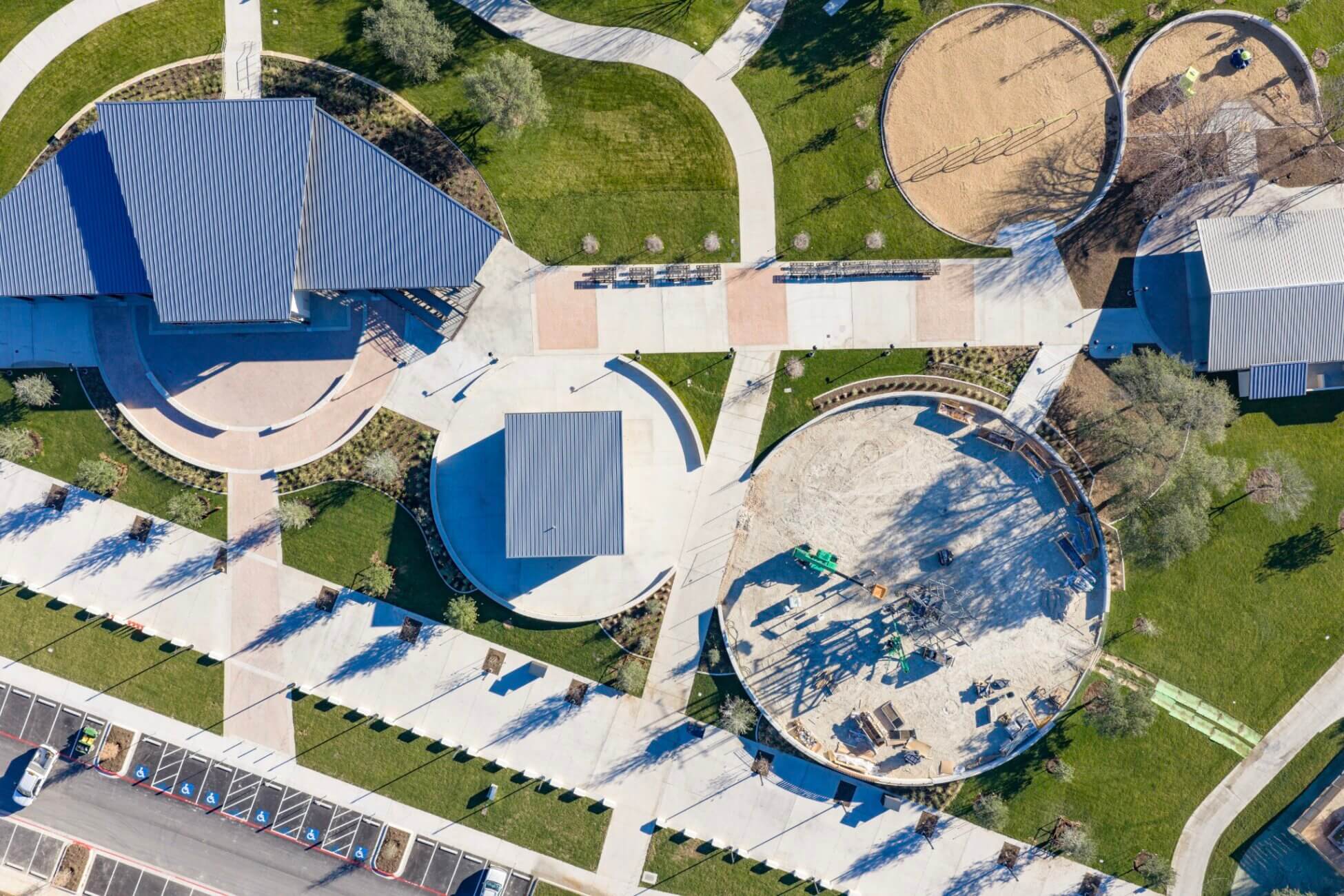The playground is located near the recently completed amphitheater and pavilion area at Old Settlers Park.