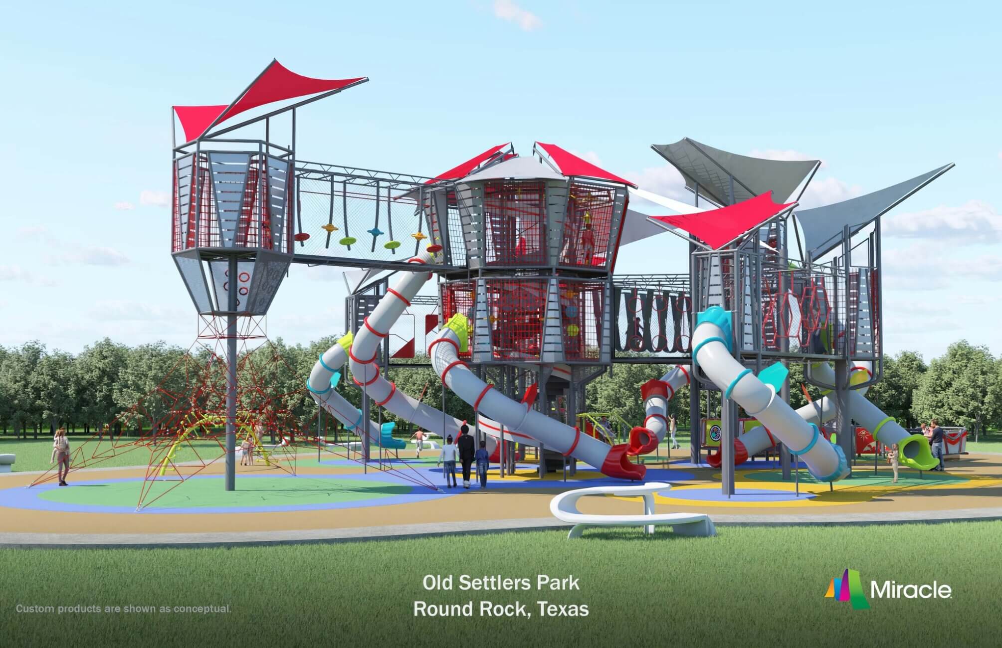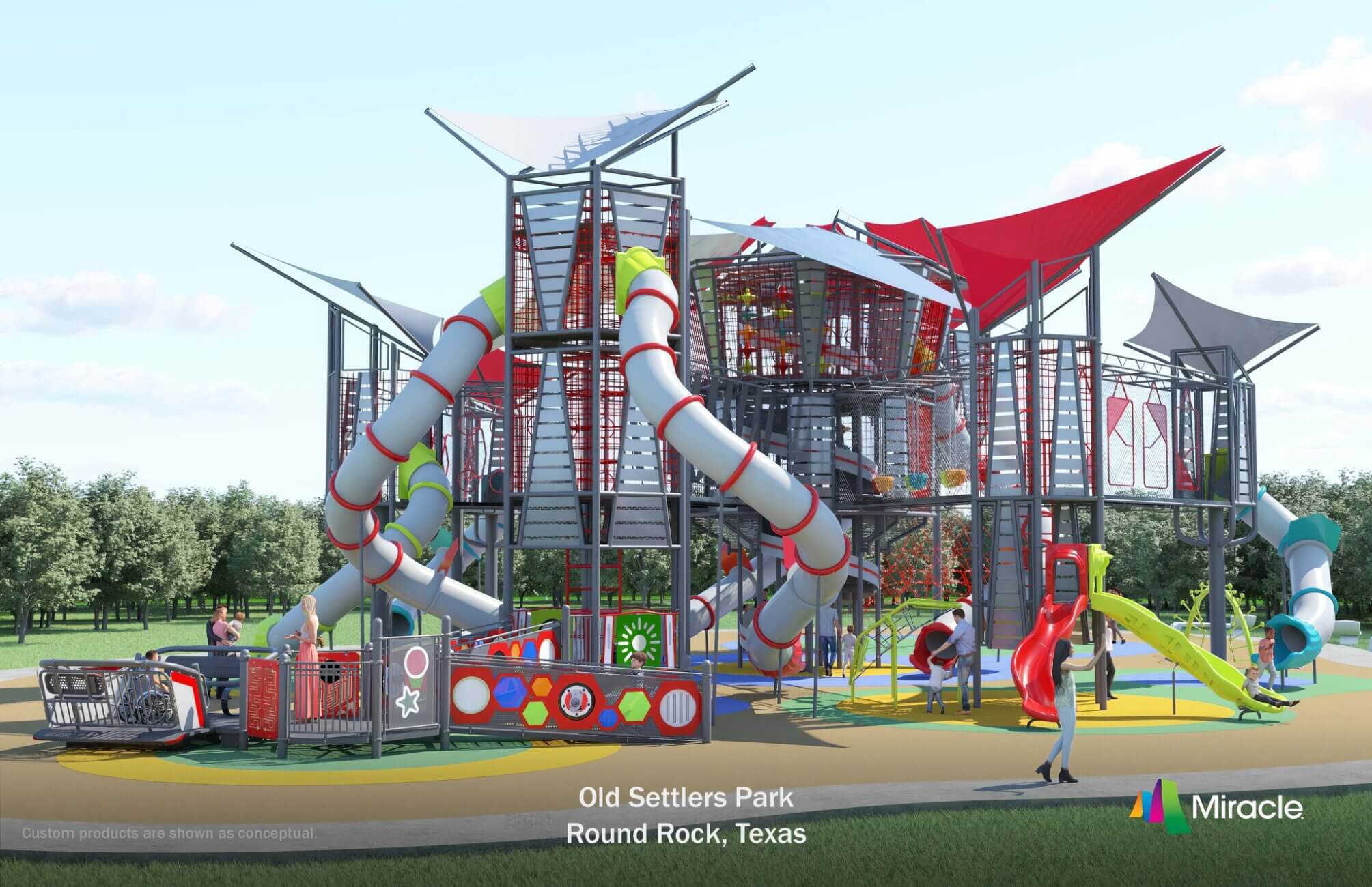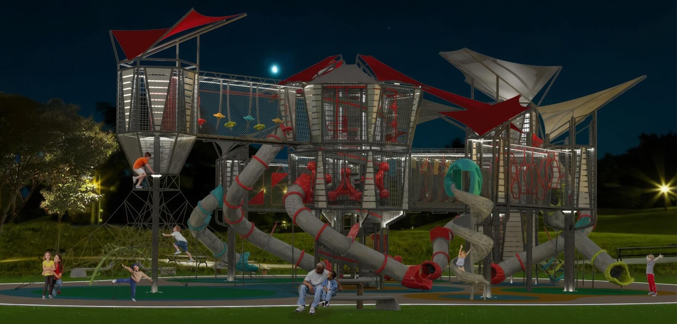 - A large, modern play structure designed for high-capacity use