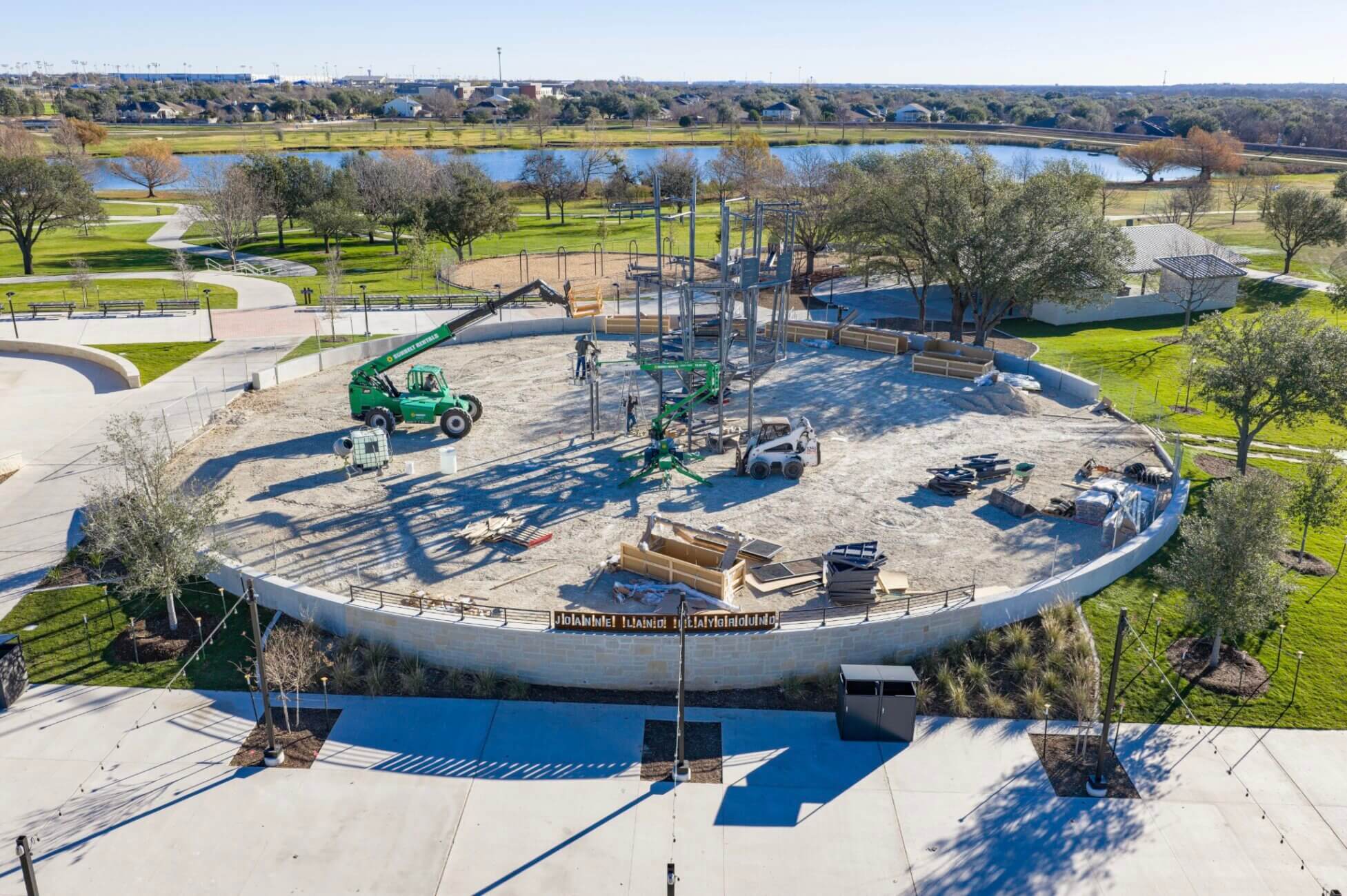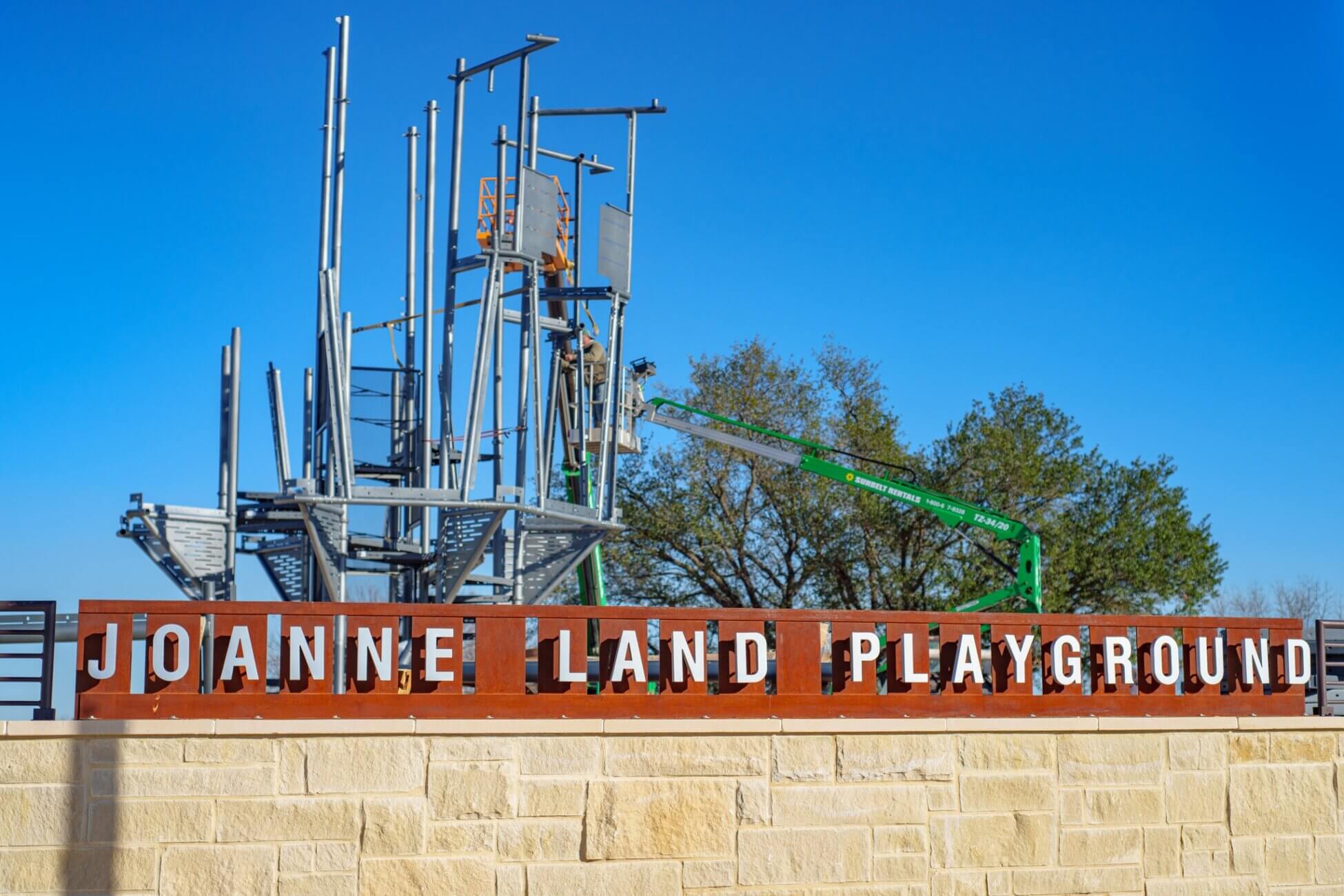 Construction is officially underway on the new Joanne Land Playground at Old Settlers Park, a major park improvement funded through the voter-approved 2023 G.O. bond projects.