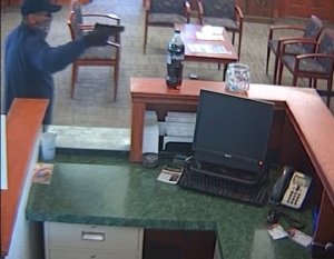 At approximately 4:50 p.m Friday, July 21, an aggravated robbery occurred at the BBVA Compass Bank, 895 North IH-35. A Hispanic male entered the bank, displayed a firearm and demanded money from a bank employee. The suspect attempted to conceal his identity by wearing a ball cap, sunglasses and bandanna over his face. The suspect was last seen wearing a dark long sleeved shirt, dark wind-pants with a stripe and tennis shoes.