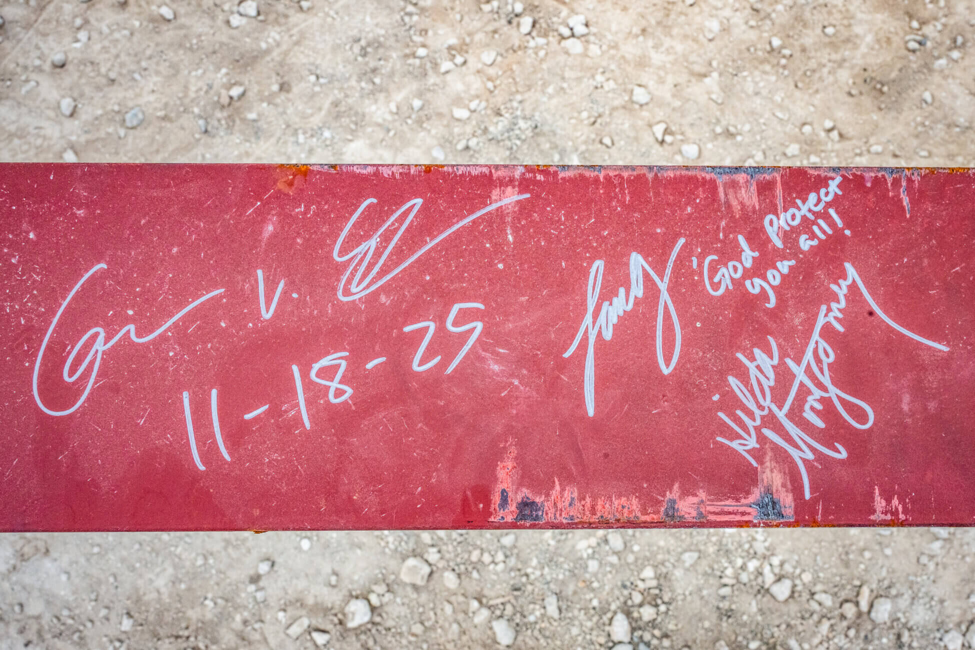 The City of Round Rock held a topping out ceremony on Nov. 18, 2025, to celebrate the completion of the highest structural point of Fire Station 10. Attendees signed the final beam before its placement, and staff raised the station’s flag to mark the milestone.